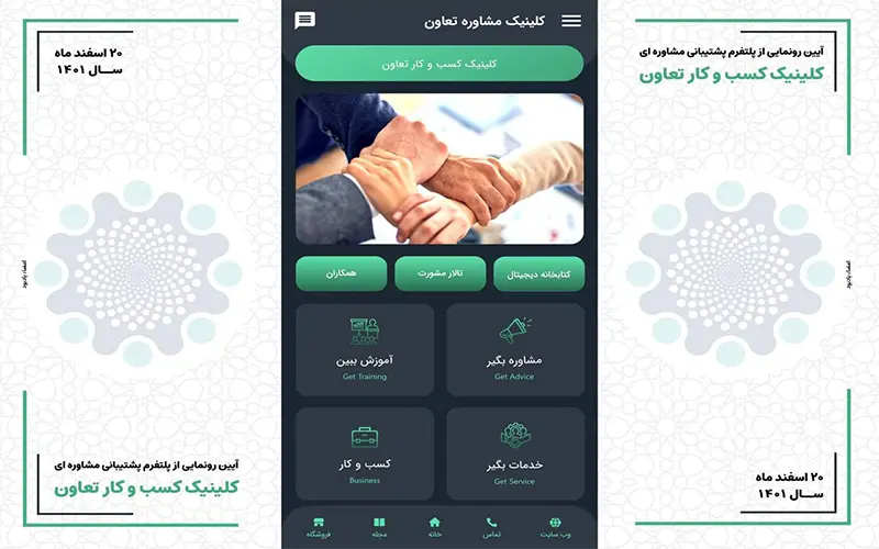 این اپلیکیشن که قابلیت های متعددی در ارائه مشاوره و خدمات دهی به کسب و کارها را دارا می باشد، بزودی وارد فضای مجازی خواهد شد و به صاحبین کسب و کارها در حوزه های متنوع، خدمات مشاوره و پشتیبانی را ارائه خواهد نمود.